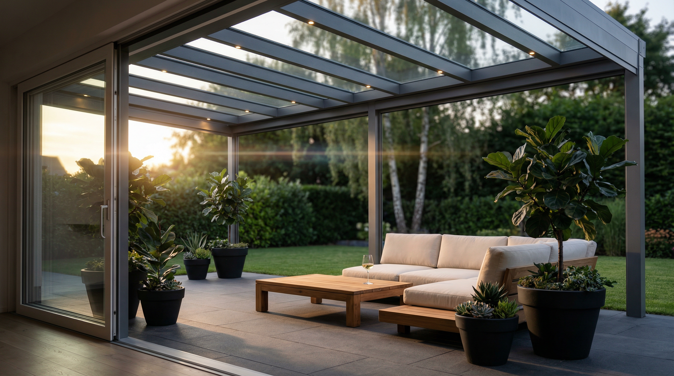 Ein Premium-Terrassendach verwandelt Ihre Außenfläche in einen ganzjährig nutzbaren Wohnraum – geschützt vor den Launen des norddeutschen Wetters.